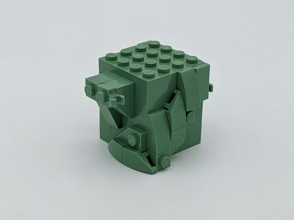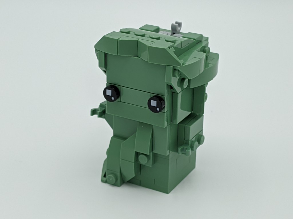 I have to admit that I really enjoyed this build. The torso deviated considerably from the standard BrickHeadz design, with an assortment of SNOT bricks placed in odd locations to anchor Lady Liberty’s robes. The upside-down bricks used for her crown was a creative touch, as was the use of a lipstick element to help anchor the torch. Despite the finished result being almost exclusively one color, the sand green LEGO color is a perfect match for the real Statue of Liberty. The gold wig element used for the torch is a beautiful contrast to the heavy use of green and makes the torch really .. er .. shine.