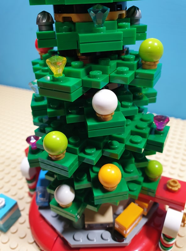 Ok i am going to cut to the short here. I loved this set when LEGO announced this as a free gift, and I adore it even more now its built and proudly shown in my Christmas display, by simply going to the £1 store and purchasing and placing some LEDs that sit perfectly in between the baubles and crystals that adorn the tree. I can only say it simply looks amazing and stands at a whopping 22 cm high tha’ts a pretty neat free gift.