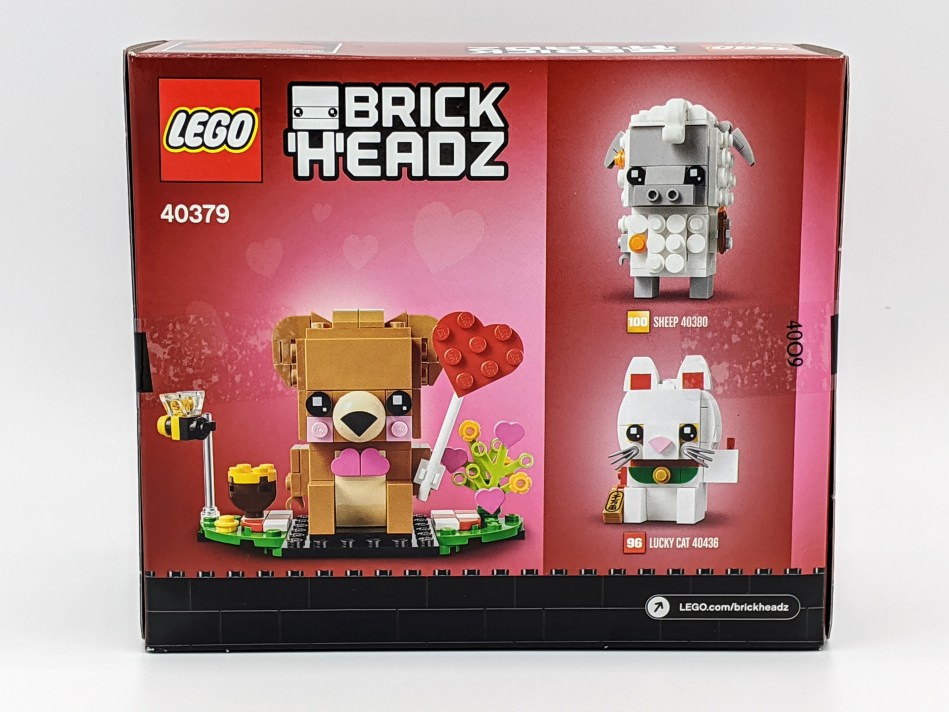 This is the third Valentine’s Day BrickHeadz set, following Bee from 2018 and Puppy from 2019. How does Bear compare to its two predecessors? Let’s find out.