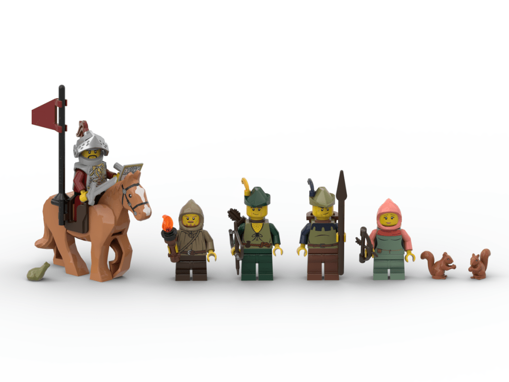 The design proposal also calls for 5 minifigures, including custom-designed torsos and a request for a new LEGO animal – squirrels.